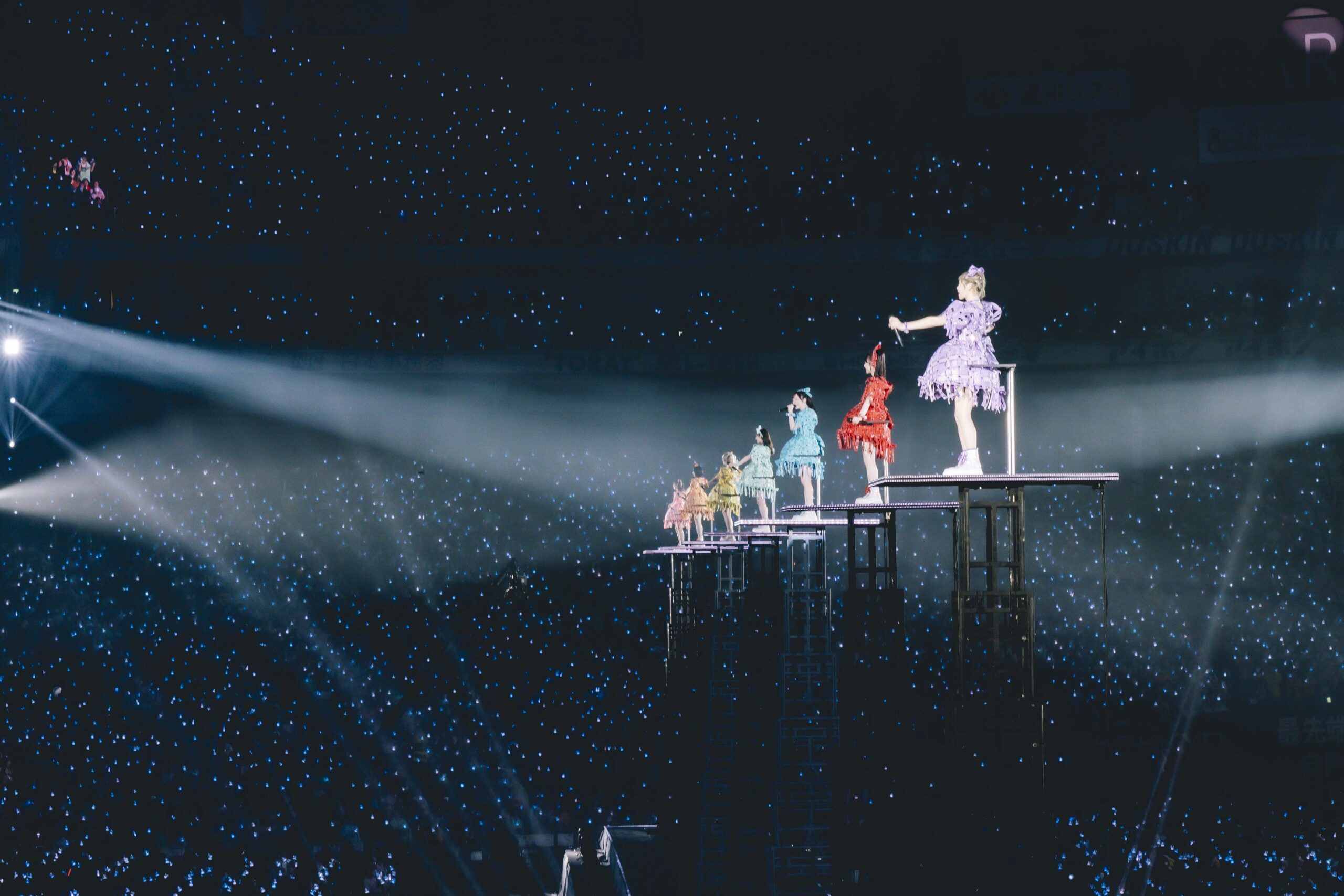 続く「君の明るい未来を追いかけて」では、言葉が真っ直ぐ客席へ届き、東京ドームに温度が宿っていく。アリーナからスタンド席まで埋め尽くされた景色を前に、7人が“いまここにいる”ことの実感を噛み締めるように歌い上げた。続いて「うぇるかむとぅ~ざ♡ふるっぱー!」が鳴ると、ギャグを辞める宣言をした鎮西寿々歌とふるっぱー(ファンの呼称)とのおなじみのやりとりが会場を包み、空気はさらにひとつになる。特別な日だからこそ、いつもの流れが強い安心感を作っていた。