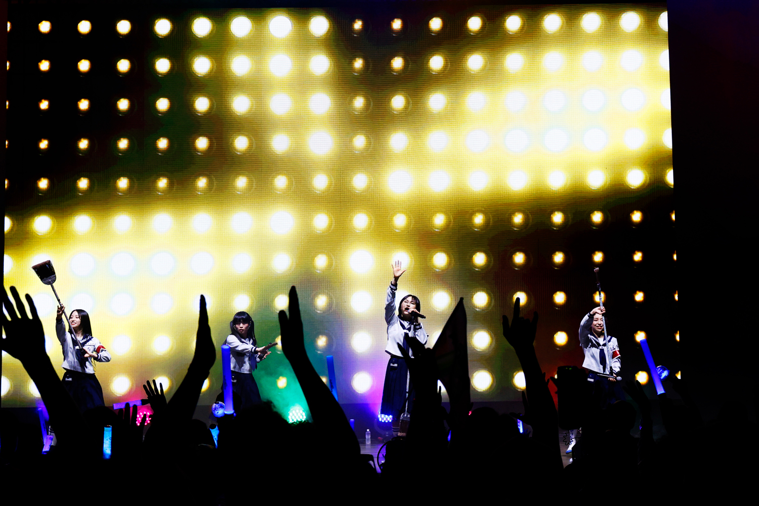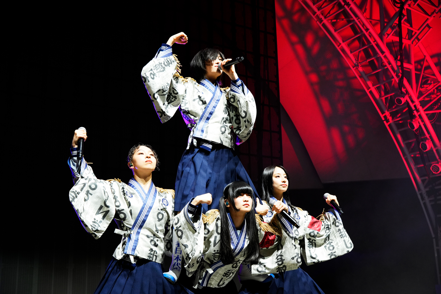 続いて自称“青春日本代表”を掲げる新しい学校のリーダーズが登場し、「Toryanse」「Tokyo calling」と日本カルチャーを感じさせるクールな楽曲たちでライブをスタート。パワフルなダンスと唯一無二の個性的なパフォーマンスで世界を熱狂させ、2024年には11万人を動員するワールドツアーを成功させた彼女たちは、「本日は我々と最高な青春の思い出を作りましょう」と一気に観客たちの心を掴み、会場中に「ATARASHII GAKKO!」という掛け声を響かせる。その声に応えるように「オトナブルー」「Arigato」「Sailor, Sail On “DNB”」「Change」など人気曲をパワフルに畳み掛け、最後には「One Heart」をパフォーマンスし、会場に集まったファンや現地の人たちと心をひとつにした。